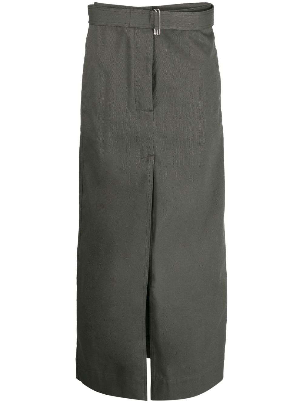 belted cotton straight skirt Highlights - Olive green - Cotton - Belted waist - Slip pockets to the sides - Concealed front fastening - Front slit - Mid-length - Straight hem Made in Italy Composition Cotton 100% SIZE & FIT Model measurements Height 5 ft 10 in(1.77 m) Bust/Chest 31.49 in(80 cm) Hips 35.43 in(90 cm) Waist 25.19 in(64 cm) FittingInformation This maxi-length skirt is intended to be worn high on the waist The belt offers adjustability for fitted preferences Sturdy and hard-wearing, this denim piece offers no stretch This piece fits true to size – take your usual size Washing instructions Machine Wash
