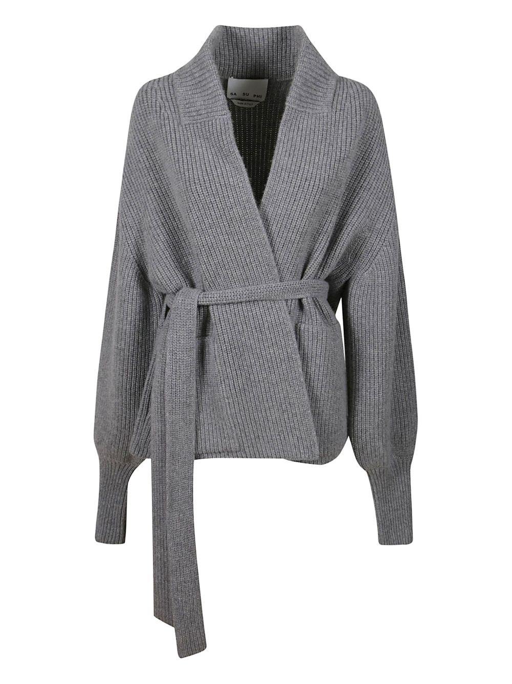 belted wrap cardigan Highlights - Medium grey - Wrap design - Ribbed knit - Shawl collar - Belt - Long sleeves Made in Italy Composition Cashmere 100%