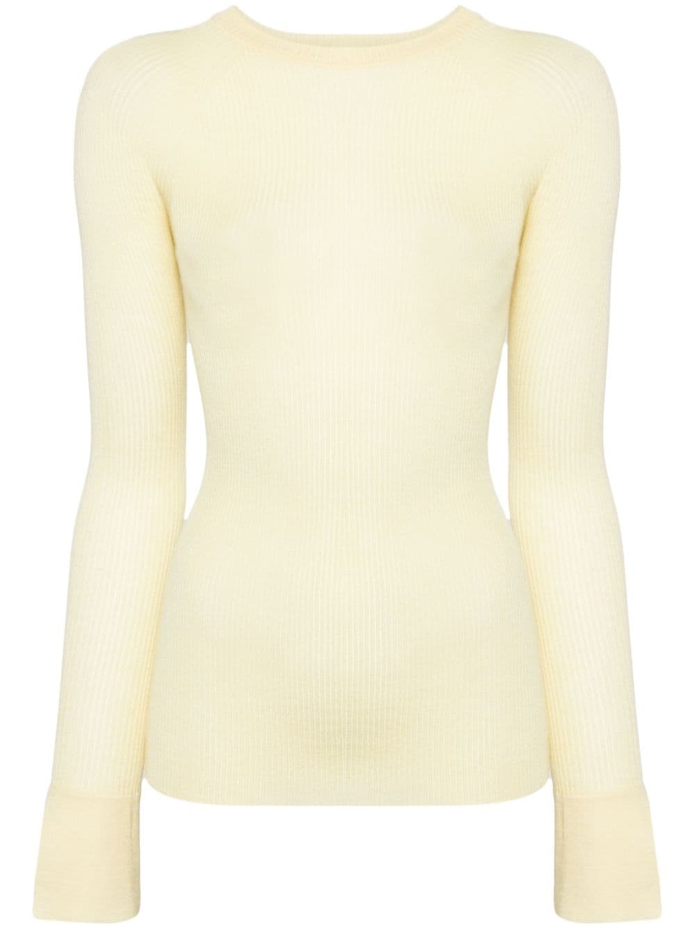 crew-neck ribbed-knit jumper Highlights - Light yellow - Cashmere-silk blend - Ribbed knit - Crew neck - Long sleeves - Straight hem Made in Italy Composition Cashmere 70%, Silk 30%