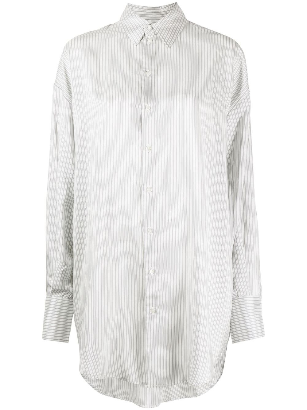 long-length striped cotton shirt Highlights - Light grey/cloud white - Silk - Vertical stripe pattern - Front button fastening - Classic collar - Long sleeves - Curved hem - Long length Made in Italy Composition Body: Silk 100% SIZE & FIT Model measurements Height 5 ft 9 in(1.76 m) Bust/Chest 31.1 in(79 cm) Hips 35.03 in(89 cm) Waist 24.4 in(62 cm) Washing instructions Dry Clean Only