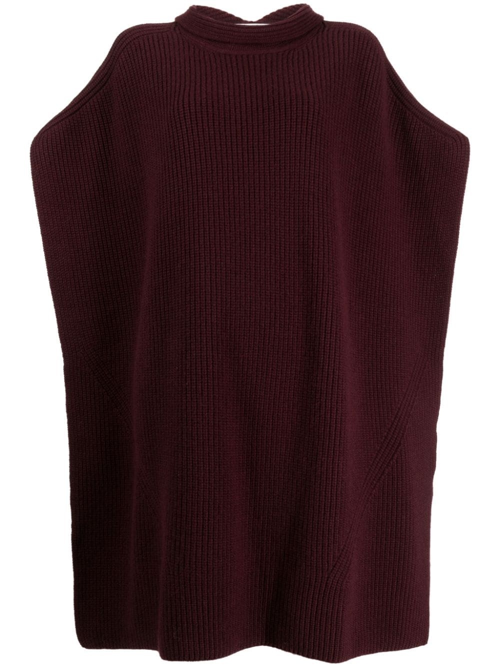 scarf-embellished ribbed-knit cape Highlights - Burgundy - Cashmere-silk blend - Ribbed knit - Attached scarf - Crew neck - Slip-on style - Sleeveless - Straight hem Made in Italy Composition Cashmere 70%, Silk 30%