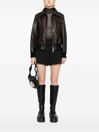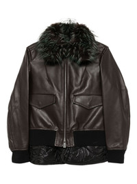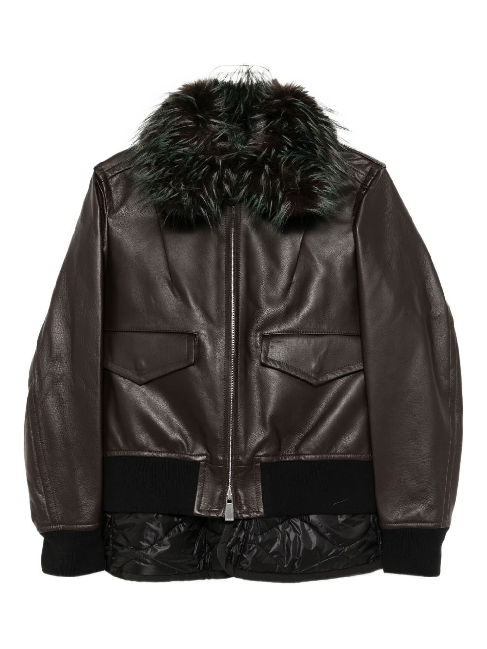 2 in 1 leather jacket Highlights - Dark brown - Concealed front zip fastening - Ribbed cuffs and hem Imported Composition Outer: Leather 100% Lining: Rayon 56%, Cupro 44% SIZE & FIT Model measurements Height 5 ft 10 in(1.78 m) Bust/Chest 31.88 in(81 cm) Hips 37 in(94 cm) Waist 25.19 in(64 cm) FittingInformation Designed with a loose outer layer, this piece is constructed with an inner layer that offers adaptability The ribbed hem offers a close, comfortable fit Firm leather offering little flexibility to maintain its durability and sturdiness Washing instructions Do Not Wash/Do Not Dry Clean