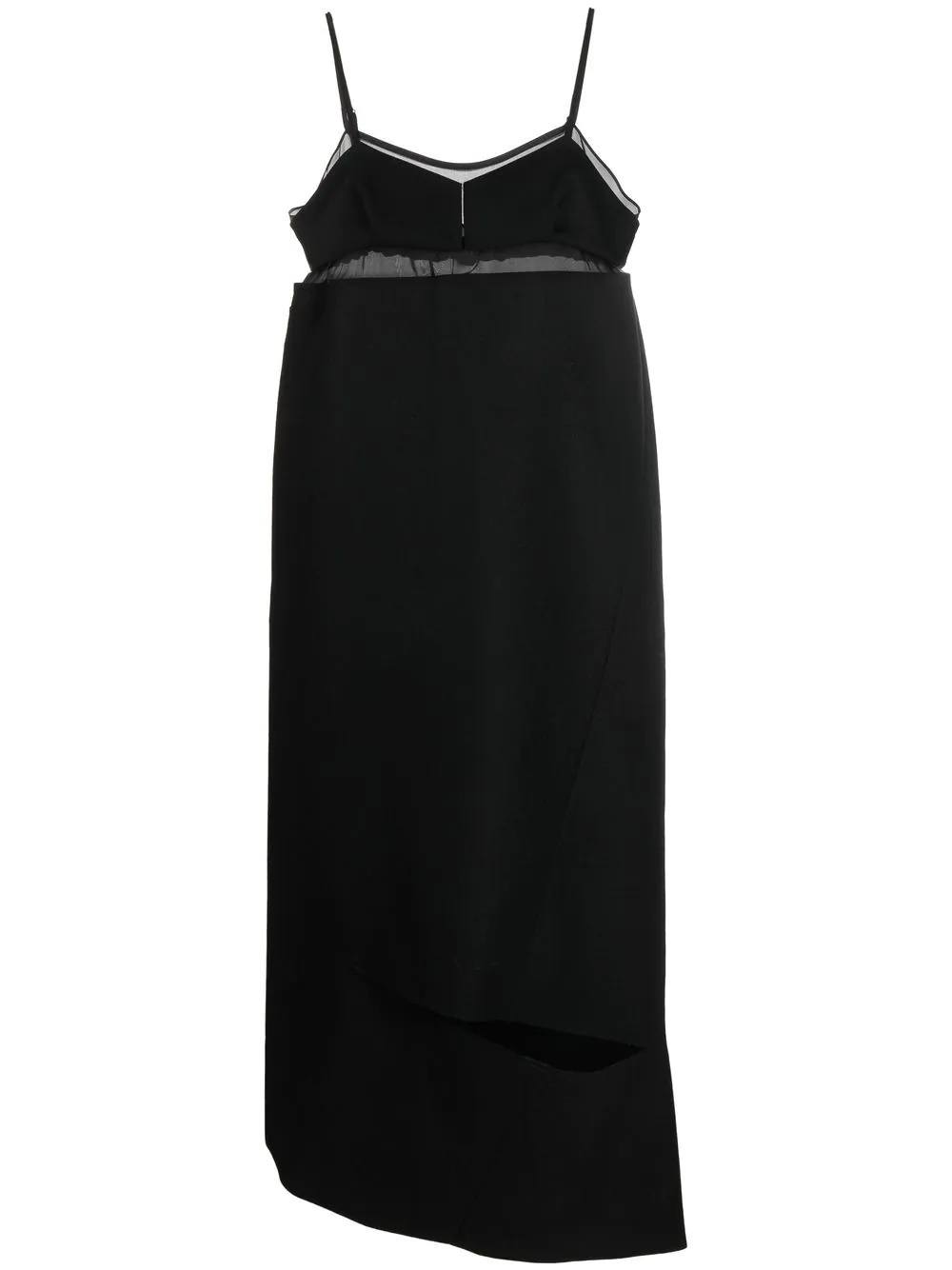 asymmetric cut-out midi dress black wool asymmetric design cut-out detailing zip detail semi-sheer panels scoop neck adjustable spaghetti straps square open back sleeveless mid-length Imported Composition Wool 100%, Polyester 100% SIZE & FIT Model measurements Height 5 ft 11 in(1.8 m) Bust/Chest 31.49 in(80 cm) Hips 36.61 in(93 cm) Waist 24.4 in(62 cm) FittingInformation This piece fits true to size. We recommend you get your regular size Made with a mid-weight non-stretch fabric Washing instructions Specialist Cleaning