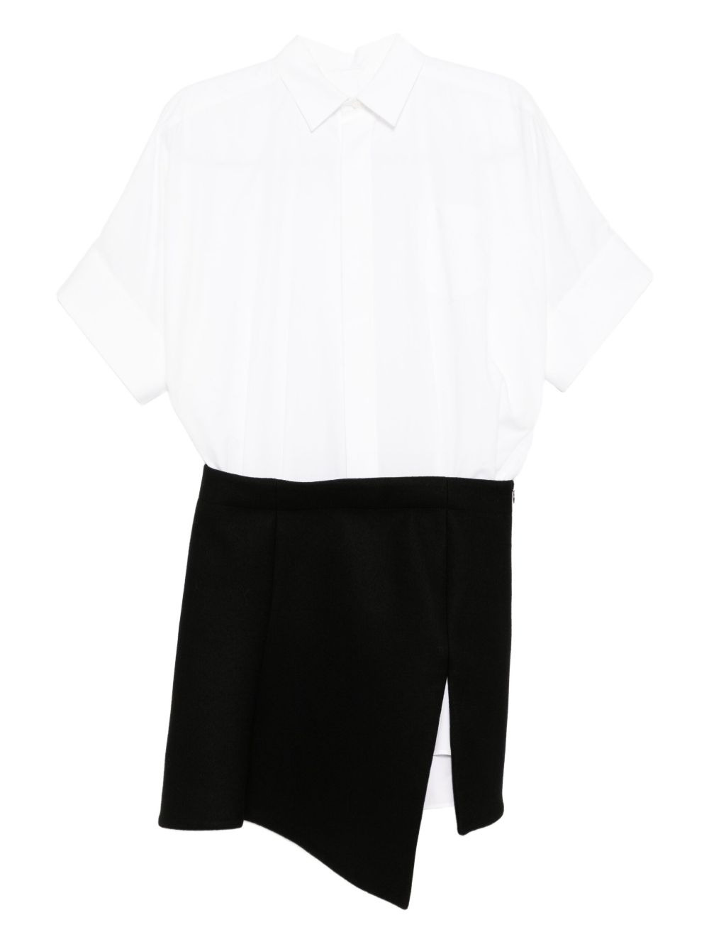 asymmetric-hem dress Highlights - White/black - Front button fastening - Short sleeves Imported Composition Outer: Polyester 65%, Cotton 35% Lining: Cupro 100% SIZE & FIT Model measurements Height 5 ft 10 in(1.77 m) Bust/Chest 30.31 in(77 cm) Hips 34.25 in(87 cm) Waist 25.19 in(64 cm) FittingInformation Designed for a loose fit at the chest with a close fit over the waist and hips Made from a midweight non-stretch fabric Washing instructions Dry Clean Only