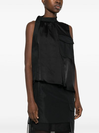 asymmetric satin top Highlights - Black - Satin finish - Semi-sheer construction - Asymmetric design - Stand-up collar - Sleeveless - Chest flap pocket - Pleat detailing to the rear - Unlined - High-low hem - Press-stud fastening at the shoulder Imported Composition Polyester 100% SIZE & FIT Model measurements Height 5 ft 11 in(1.8 m) Bust/Chest 32.67 in(83 cm) Hips 36.22 in(92 cm) Waist 24.4 in(62 cm) FittingInformation Designed to be unstructured, offering a loose fit throughout Made from a lightweight non-stretch fabric This piece fits true to size – take your usual size Washing instructions Dry Clean Only