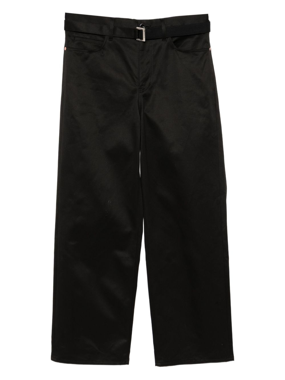 belted trousers Highlights - Black - Front button and zip fastening - Two side seam pockets - Two rear welt pockets Imported Composition Cotton 100% SIZE & FIT Model measurements Height 5 ft 10 in(1.77 m) Bust/Chest 30.31 in(77 cm) Hips 36.22 in(92 cm) Waist 24.8 in(63 cm) FittingInformation Designed for a relaxed tapered cut, these trousers allow for a close fit at the waist and offer a loose fit at the thighs, with a closer fit toward the ankles The belt offers adjustability for fitted preferences Made from a midweight non-stretch fabric Washing instructions Dry Clean Only