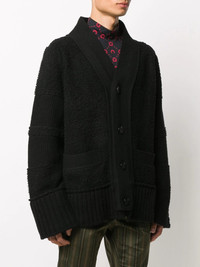 button-down cardigan Highlights - Black - Wool blend - Button fastening - V-neck - Long sleeves - Two front patch pockets Imported Composition Wool 80%, Nylon 20% SIZE & FIT Model measurements Height 6 ft 1 in(1.85 m) Bust/Chest 35.82 in(91 cm) Hips 37.79 in(96 cm) Waist 29.13 in(74 cm) FittingInformation This piece fits true to size. We recommend you get your regular size Cut for a loose fit Made with a mid-weight fabric Washing instructions Dry Clean Only