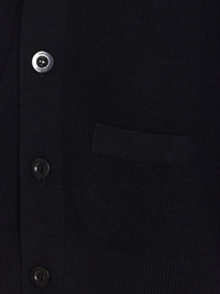 button-down cardigan Highlights - Black - Front button fastening - Two front patch pockets - V-neck - Long sleeves Imported Composition Wool 100%, Polyester 100% Washing instructions Read Manufacturer Guidelines