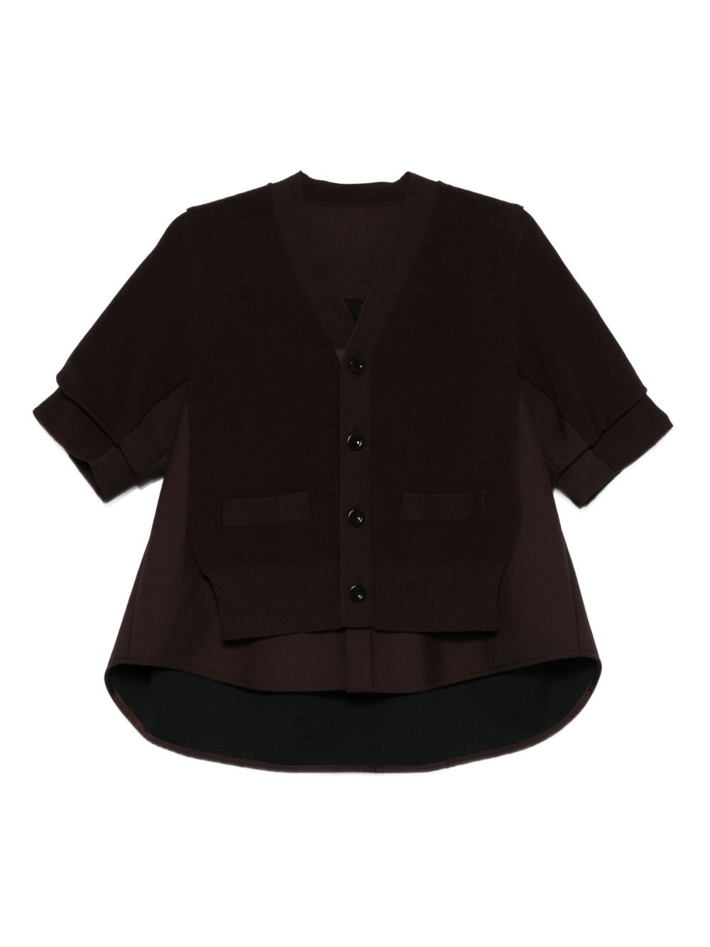 button-front layered cardigan Highlights - Brown - Short sleeves - V-neck - Button front - Layered design - Patch pockets Imported Composition Cotton 57%, Polyester 43% SIZE & FIT Model measurements Height 5 ft 10 in(1.77 m) Bust/Chest 32.28 in(82 cm) Hips 35.03 in(89 cm) Waist 25.19 in(64 cm) Washing instructions Read Manufacturer Guidelines