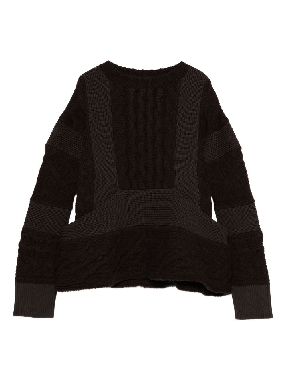 cable-knit panelled sweater Highlights - Brown - Cable knit - Ribbed panels - Round neck - Long sleeves - Fitted cuffs Imported Composition Wool 63%, Polyester 37% SIZE & FIT Model measurements Height 5 ft 9 in(1.76 m) Bust/Chest 31.49 in(80 cm) Hips 35.03 in(89 cm) Waist 24.8 in(63 cm) Washing instructions Read Manufacturer Guidelines