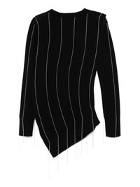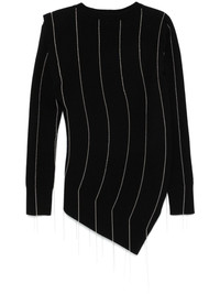 Chalk Stripe sweater Highlights - Black - Wool - Knitted construction - Chalk stripe pattern - Bead detailing - Crew neck - Long sleeves - Ribbed cuffs and hem - Fringe detailing - Asymmetric hem Imported Composition Wool 100% Washing instructions Do Not Wash/Do Not Dry Clean