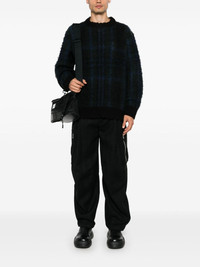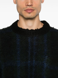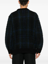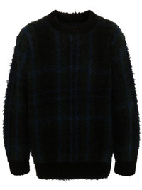 check-pattern sweater Highlights - Dark green/blue - Wool blend - Brushed finish - Check pattern - Crew neck - Drop shoulder - Long raglan sleeves - Buttoned cuffs - Press stud-fastening side vents - Ribbed hem Imported Composition Outer: Wool 55%, Rayon 55%, Cotton 45%, Acrylic 25%, Nylon 20% Lining: Polyester 100% SIZE & FIT Model measurements Height 6 ft 1 in(1.86 m) Bust/Chest 37.4 in(95 cm) Hips 36.22 in(92 cm) Waist 29.52 in(75 cm) FittingInformation Designed to be unstructured, offering a loose fit throughout The ribbed hem offers a close, comfortable fit Made with a midweight knit, this piece offers some stretch This piece fits true to size – take your usual size