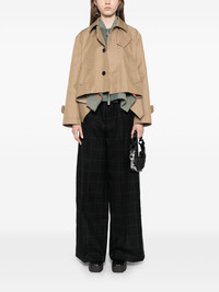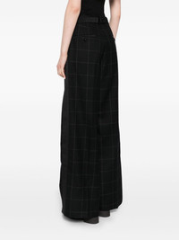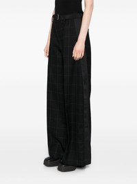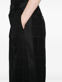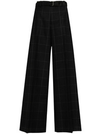 check-pattern wide-leg trousers Highlights - Black - Wool blend - Front button and zip fastening - Check pattern - Detachable adjustable waist strap - Belt loops - Two side inset pockets - Two rear button-fastening pockets Imported Composition Outer: Wool 100% Lining: Cupro 100% SIZE & FIT Model measurements Height 5 ft 10 in(1.77 m) Bust/Chest 27.95 in(71 cm) Hips 34.64 in(88 cm) Waist 22.83 in(58 cm) FittingInformation Designed with a wide-leg cut, these trousers allow for a close fit at the waist and offer a loose and roomy fit over the leg The belt offers adjustability for fitted preferences Made from a midweight non-stretch fabric