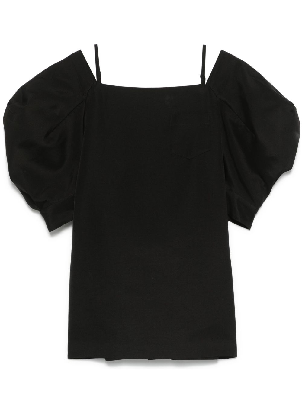 cold-shoulder mini dress Highlights - Black - Adjustable shoulder strap - Buttoned cuffs - Chest patch pocket Imported Composition Outer: Silk 54%, Cotton 46% Lining: Cupro 100% SIZE & FIT Model measurements Height 5 ft 11 in(1.8 m) Bust/Chest 33.07 in(84 cm) Hips 37.4 in(95 cm) Waist 25.19 in(64 cm) FittingInformation Designed for a relaxed fit, this piece allows for comfort and movement when worn The adjustable shoulder straps allow for a preferred fit when worn Made from a midweight non-stretch fabric