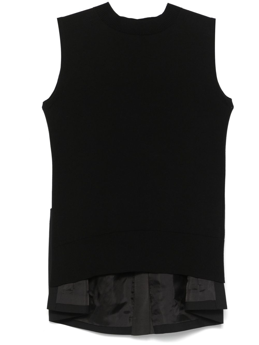 colourblock vest Highlights - Black - Box-pleat detail - Rear slit - High-low hem Imported Composition Outer: Cotton 100%, Polyester 70%, Wool 30% Lining: Polyester 100%, Cupro 100% SIZE & FIT Model measurements Height 5 ft 9 in(1.76 m) Bust/Chest 32.28 in(82 cm) Hips 35.43 in(90 cm) Waist 25.19 in(64 cm) FittingInformation Designed to be unstructured, offering a loose fit throughout Made from a midweight fabric