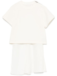 contrast-panel T-shirt Highlights - Light beige - Shoulder zip fastening - Crew neck - Short sleeves - Sheer panelling Imported Composition Lining: Polyester 100% Outer: Nylon 100%, Polyester 70%, Wool 30% SIZE & FIT Model measurements Height 5 ft 10 in(1.78 m) Bust/Chest 33.85 in(86 cm) Hips 36.61 in(93 cm) Waist 26.77 in(68 cm) Measurement SLEEVE LENGTH 12.2 in(31 cm) LENGTH 35.82 in(91 cm) WAIST 42.51 in(108 cm) BUST 40.15 in(102 cm) Shoulder Width 17.32 in(44 cm) FittingInformation Designed to be unstructured, offering a loose fit throughout Made from a midweight non-stretch fabric