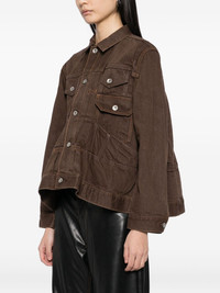 cotton denim jacket Highlights - Coffee brown - Front button fastening - Three side flap pockets - Buttoned-cuff sleeves Imported Composition Cotton 100% SIZE & FIT Model measurements Height 5 ft 10 in(1.77 m) Bust/Chest 31.49 in(80 cm) Hips 35.43 in(90 cm) Waist 25.19 in(64 cm) FittingInformation Designed to be unstructured, offering a loose fit throughout Sturdy and hard-wearing, this denim piece offers no stretch Washing instructions Dry Clean Only
