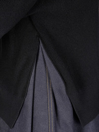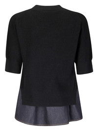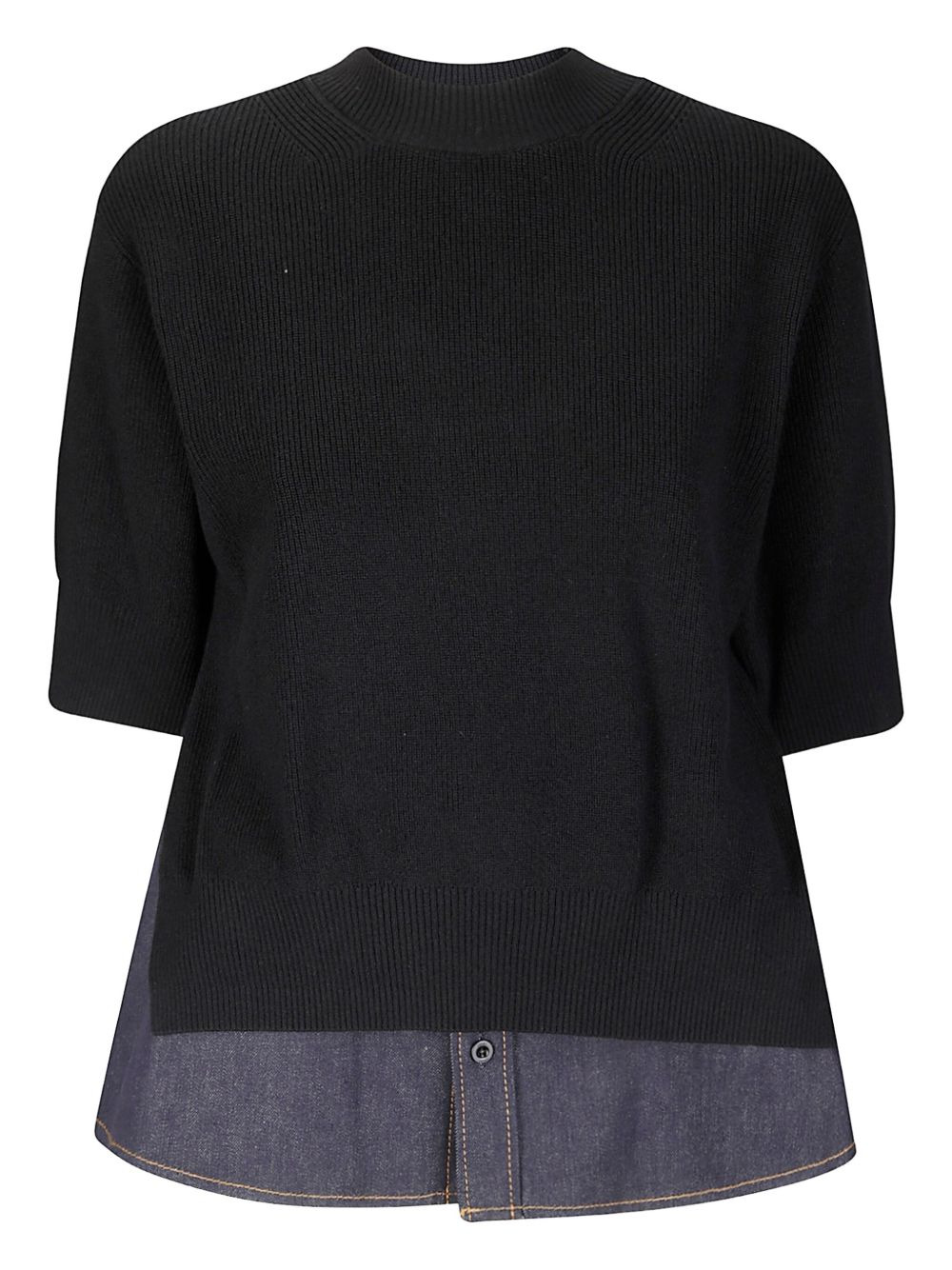 denim-panel knit top Highlights - Black - Ribbed knit - Short sleeves - Denim shirt panel - Curved hemline Imported Composition Cotton 57%, Polyester 43% Washing instructions Read Manufacturer Guidelines