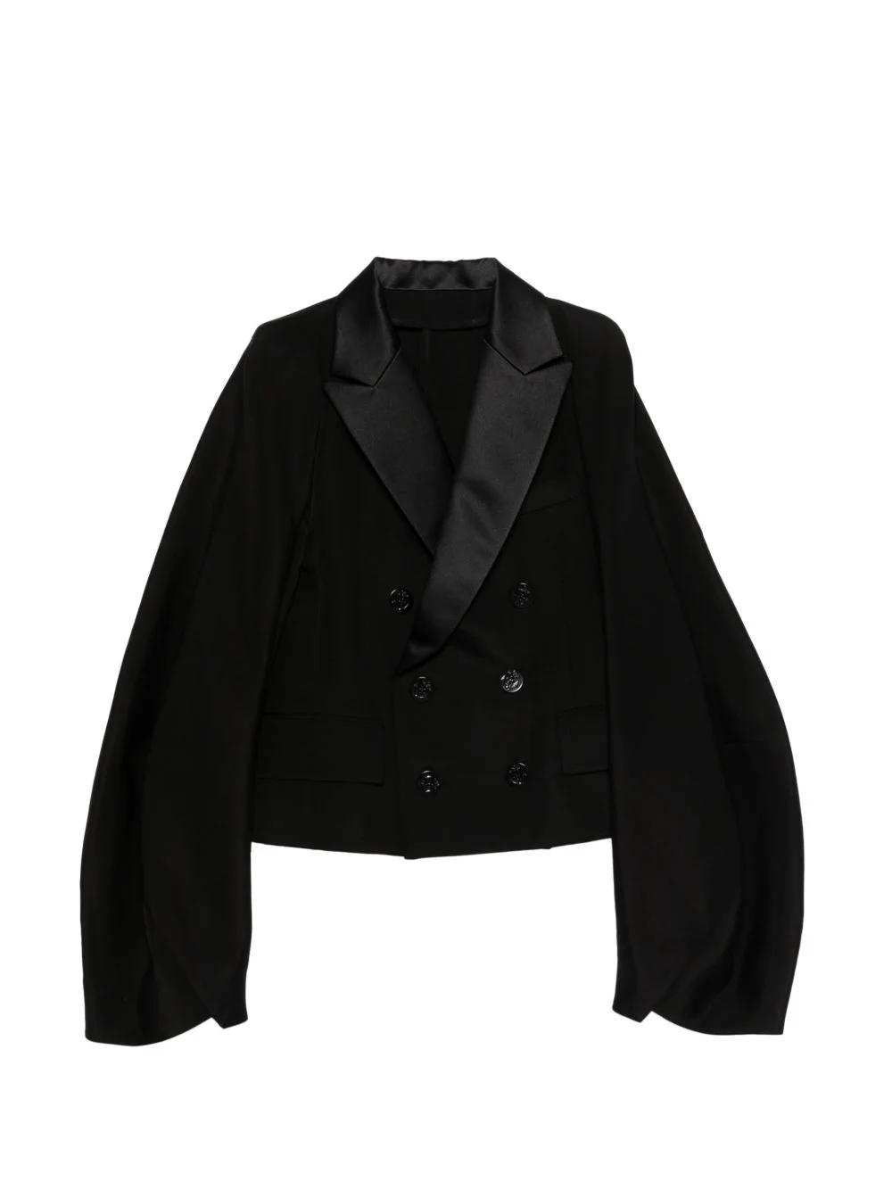 double-breasted cropped jacket Highlights - Black - Peak lapels - Double-breasted - Flap pockets - Button fastening - Cropped style Imported Composition Polyester 100%, Silk 54%, Cotton 46% Washing instructions Dry Clean Only