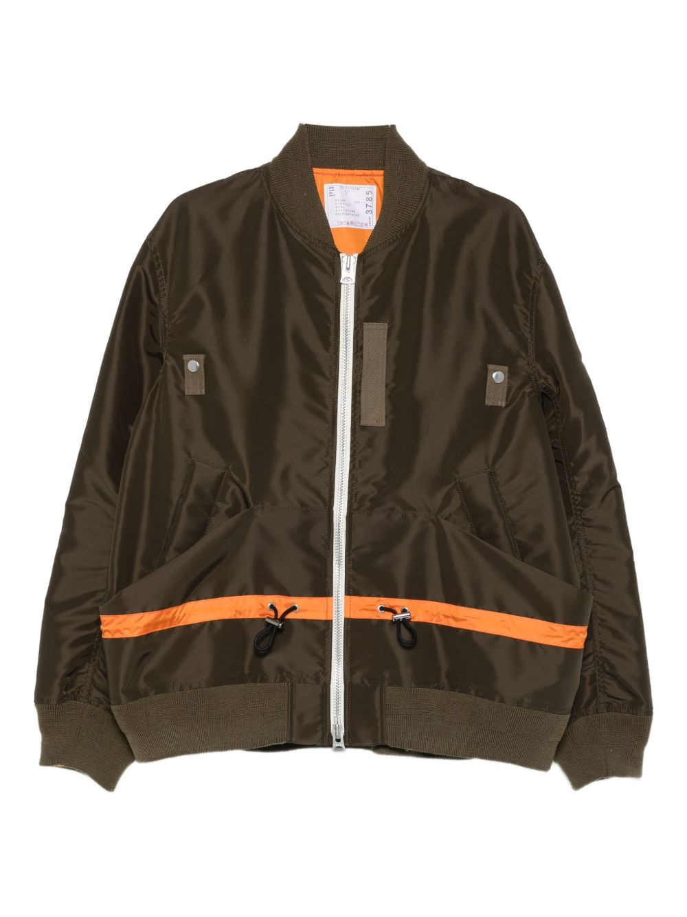 drawstring-waist bomber jacket Highlights - Olive green - Zip fastening - Ribbed cuffs - Contrasting panel - Drawstring waist - Side pockets Imported Composition Lining: Polyester 100% Outer: Nylon 100% SIZE & FIT Model measurements Height 6 ft 1 in(1.85 m) Bust/Chest 38.58 in(98 cm) Hips 37 in(94 cm) Waist 30.31 in(77 cm) Washing instructions Dry Clean Only