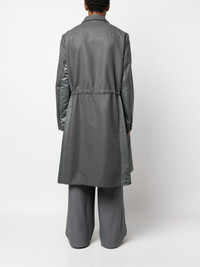 drawstring wool trench coat Highlights - Anthracite grey - Wool - Notched lapels - A-line - Drawstring waist - Two front flap pockets - Chest welt pocket - Long sleeves - Buttoned-cuff sleeves - Mid-length - Straight hem Imported Composition Outer: Wool 100%, Nylon 100%, Polyester 100% Lining: Cupro 100%, Acetate 68%, Polyester 32% SIZE & FIT Model measurements Height 6 ft 1 in(1.85 m) Bust/Chest 38.58 in(98 cm) Hips 37 in(94 cm) Waist 30.31 in(77 cm) FittingInformation Designed to be unstructured, offering a loose fit throughout The adjustable drawstring means that you can adjust this piece’s fit to suit your comfort and preference Made from a midweight non-stretch fabric This piece fits true to size – take your usual size Washing instructions Dry Clean Only