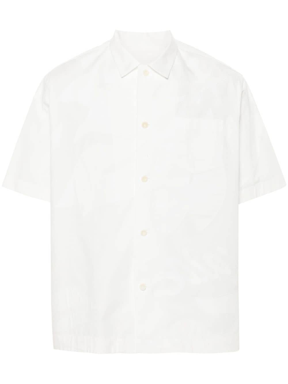 embroidered-design button-up shirt Highlights - White - Embroidered design - Classic collar - Front button fastening - Drop shoulder - Short sleeves - Chest patch pocket - Side slits - Straight high-low hem Imported Composition Polyester 65%, Cotton 35% SIZE & FIT Model measurements Height 6 ft 2 in(1.89 m) Bust/Chest 36.22 in(92 cm) Hips 35.82 in(91 cm) Waist 28.54 in(72.5 cm) FittingInformation Designed for a regular fit, allowing for a comfortably loose fit throughout the body Made from a midweight non-stretch fabric This piece fits true to size – take your usual size