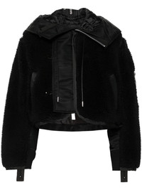 fleece-texture jacket Highlights - Black - Wool - Fleece texture - Panelled design - Front two-way zip fastening - Off-centre front button fastening - Drawstring hood - Funnel neck - Long sleeves with ribbed cuffs - Sleeve zip pocket - Two press-stud fastening side pockets - Side slits - Full lining - Drawstring hem - Cropped Imported Composition Outer: Wool 100%, Nylon 100%, Acrylic 55%, Polyester 45% Lining: Polyester 100% SIZE & FIT Model measurements Height 5 ft 9 in(1.75 m) Bust/Chest 31.88 in(81 cm) Hips 34.64 in(88 cm) Waist 24.01 in(61 cm) Measurement CHEST 26.57 in(67.5 cm) LENGTH 20.47 in(52 cm) SLEEVE LENGTH 24.21 in(61.5 cm) Shoulder Width 19.68 in(50 cm) FittingInformation Designed for a boxy fit, intended for a loose fit throughout Cropped in length Made from a midweight fabric