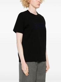 flocked-slogan T-shirt Highlights - Black - Crew neck - Short sleeves - Straight hem Imported Composition Cotton 100% SIZE & FIT Model measurements Height 5 ft 9 in(1.75 m) Bust/Chest 34.64 in(88 cm) Hips 36.61 in(93 cm) Waist 26.37 in(67 cm) FittingInformation Designed to be unstructured, offering a loose fit throughout Made from a midweight non-stretch fabric, this piece offers minimal elasticity when worn