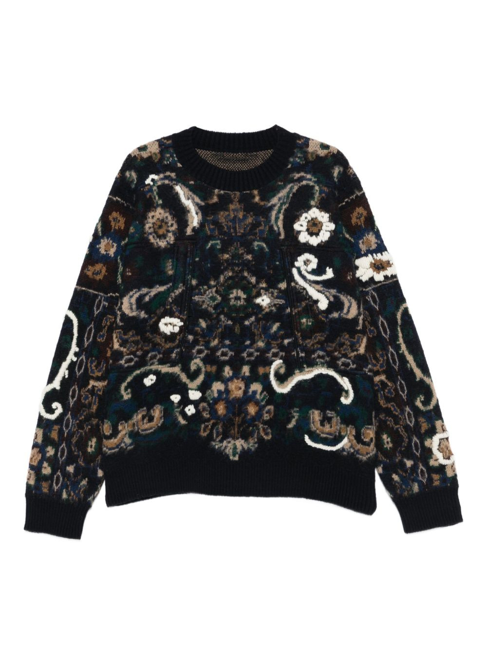 floral-pattern crew-neck sweater Highlights - Navy blue - Floral pattern - Crew neck - Long sleeves - Ribbed trim Imported Composition Fabric 100% Washing instructions Read Manufacturer Guidelines