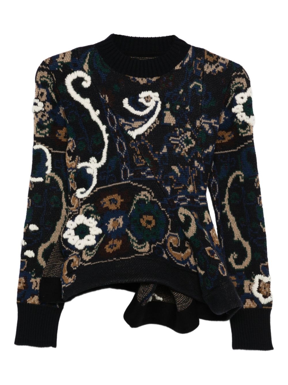 floral-pattern embellished sweater Highlights - Black - Floral pattern - Embellished details - Crew neck - Long sleeves - Asymmetric hem - Wool Imported Composition Wool 100% SIZE & FIT Model measurements Height 5 ft 10 in(1.78 m) Bust/Chest 33.85 in(86 cm) Hips 36.61 in(93 cm) Waist 26.77 in(68 cm) Washing instructions Dry Clean Only