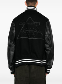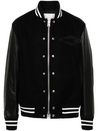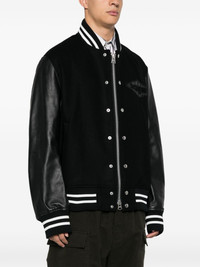 Gonz bomber jacket Highlights - Black - Wool/calf leather - Panelled design - Front two-way zip fastening - Front press-stud fastening - Striped ribbed band collar - Contrasting-fabric sleeves - Long sleeves - Logo patch at the chest - Two side welt pockets - Press stud-fastening side vents - Embroidered motif to the back - Internal slip pocket - Full lining - Striped ribbed cuffs and hem Imported Composition Outer: Calf Leather 100%, Wool 100%, Rayon 70%, Polyester 52%, Cotton 47%, Nylon 30%, Polyurethane 1% Lining: Cupro 100% SIZE & FIT Model measurements Height 6 ft 1 in(1.86 m) Bust/Chest 36.61 in(93 cm) Hips 37 in(94 cm) Waist 28.74 in(73 cm) FittingInformation Designed to be unstructured, offering a loose fit throughout The ribbed hem offers a close, comfortable fit Made from a midweight non-stretch fabric Washing instructions Do Not Wash/Do Not Dry Clean