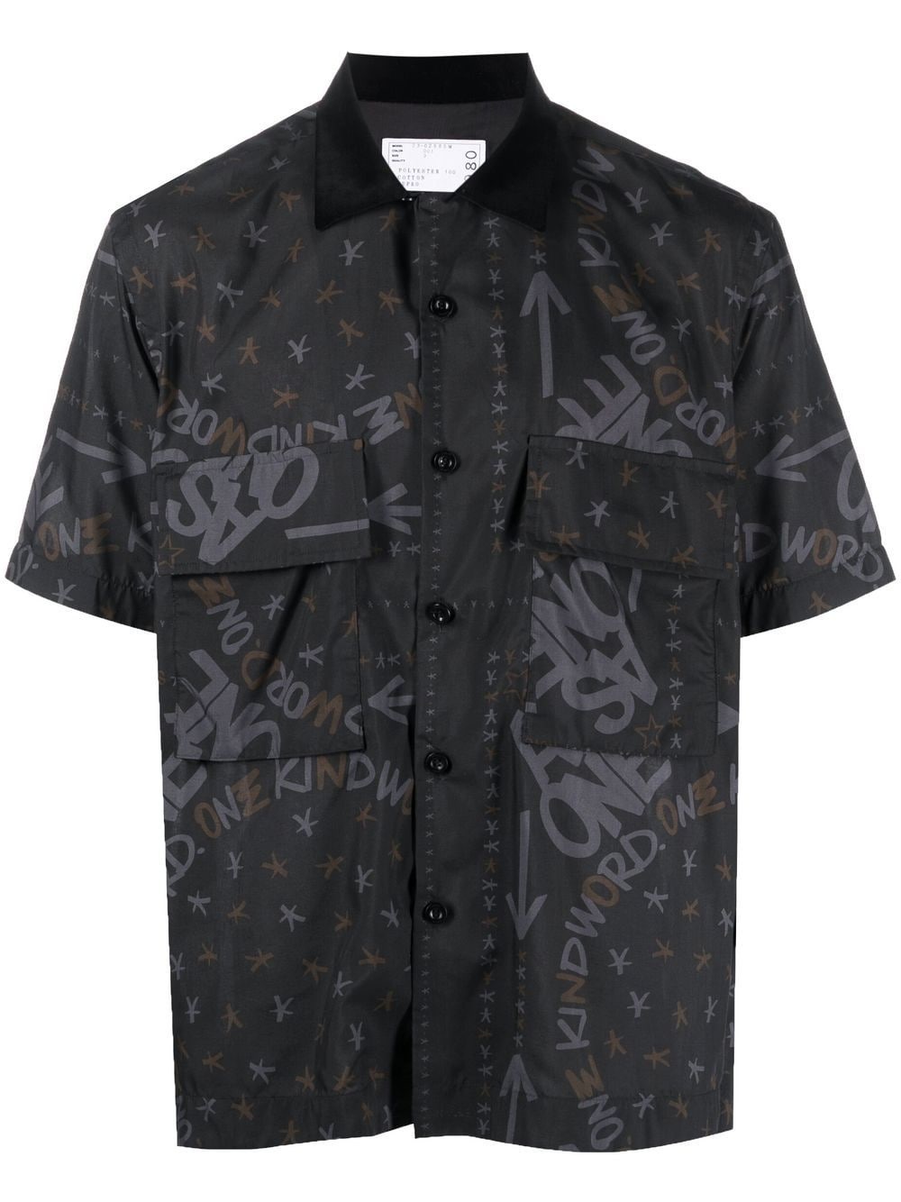 graphic-print short-sleeve shirt black all-over graphic print classic collar short sleeves front button fastening straight hem Imported Composition Polyester 100% SIZE & FIT Model measurements Height 6 ft 2 in(1.89 m) Bust/Chest 37.4 in(95 cm) Hips 35.03 in(89 cm) Waist 27.95 in(71 cm) Measurement CHEST 48.81 in(124 cm) SLEEVE LENGTH 11.81 in(30 cm) LENGTH 31.49 in(80 cm) WAIST 51.18 in(130 cm) Shoulder Width 19.68 in(50 cm) FittingInformation This piece fits true to size. We recommend you get your regular size Cut for a loose fit Made with a mid-weight non-stretch fabric Washing instructions Dry Clean Only