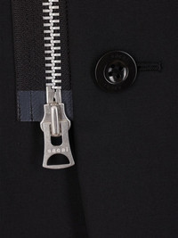 high-neck zip-up blazer Highlights - Black - High neck - Front zip fastening - Front button fastening - Front flap pockets - Long sleeves - Buttoned-cuff sleeves - Straight hem Imported Composition Outer: Nylon 100%, Polyester 70%, Wool 30% Lining: Cupro 100%