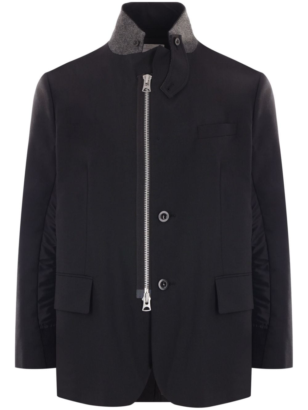 high-neck zip-up blazer