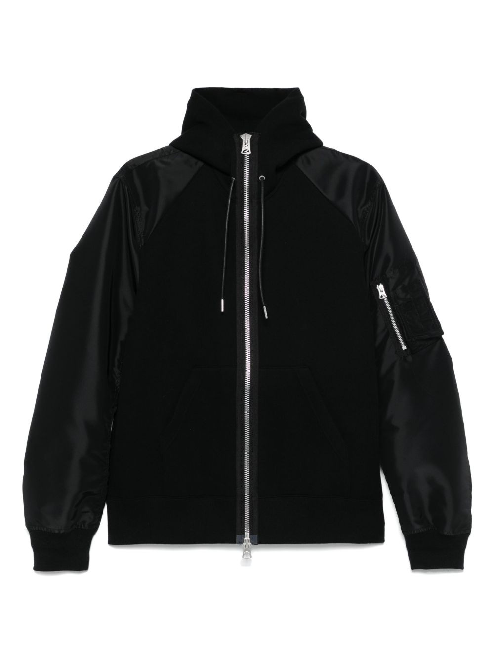 hooded bomber jacket Highlights - Black - Front two-way zip fastening - Two front pouch pockets - Sleeve zip pocket - Long raglan sleeves Imported Composition Nylon 100%, Cotton 62%, Polyester 38% SIZE & FIT Model measurements Height 6 ft 1 in(1.85 m) Bust/Chest 38.58 in(98 cm) Hips 37 in(94 cm) Waist 30.31 in(77 cm) FittingInformation Designed to be unstructured, offering a loose fit throughout The ribbed hem offers a close, comfortable fit Made from a midweight non-stretch fabric, this piece offers minimal elasticity when worn Washing instructions Dry Clean Only