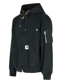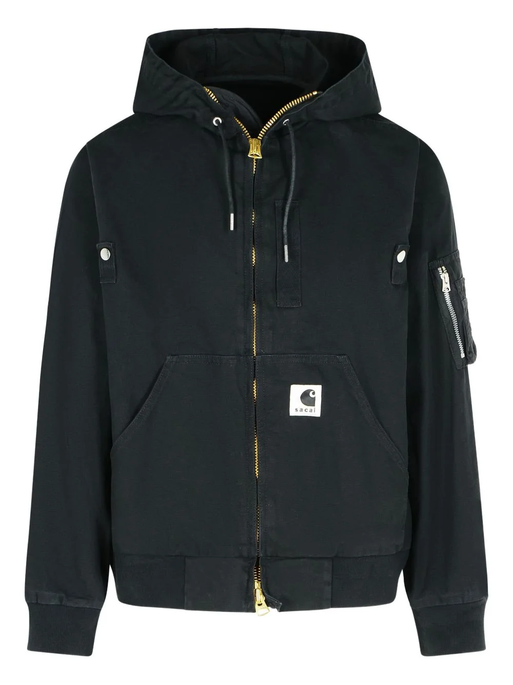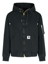 hooded logo-patch bomber jacket Highlights - Black - Drawstring hood - Zip closure - Front pouch pockets - Zip sleeve pocket - Ribbed hem and cuffs Imported Composition Cotton 100% Washing instructions Read Manufacturer Guidelines