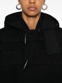hooded toggle-fastening jacket Highlights - Black - Hooded neckline - Toggle fastening - Rope detailing - Zip fastening - Long sleeves Imported Composition Outer: Wool 100%, Nylon 100%, Polyester 55%, Cotton 44%, Polyurethane 1% Lining: Polyester 100%, Cupro 100% SIZE & FIT Model measurements Height 5 ft 10 in(1.77 m) Bust/Chest 33.07 in(84 cm) Hips 37 in(94 cm) Waist 24.8 in(63 cm) Washing instructions Dry Clean Only