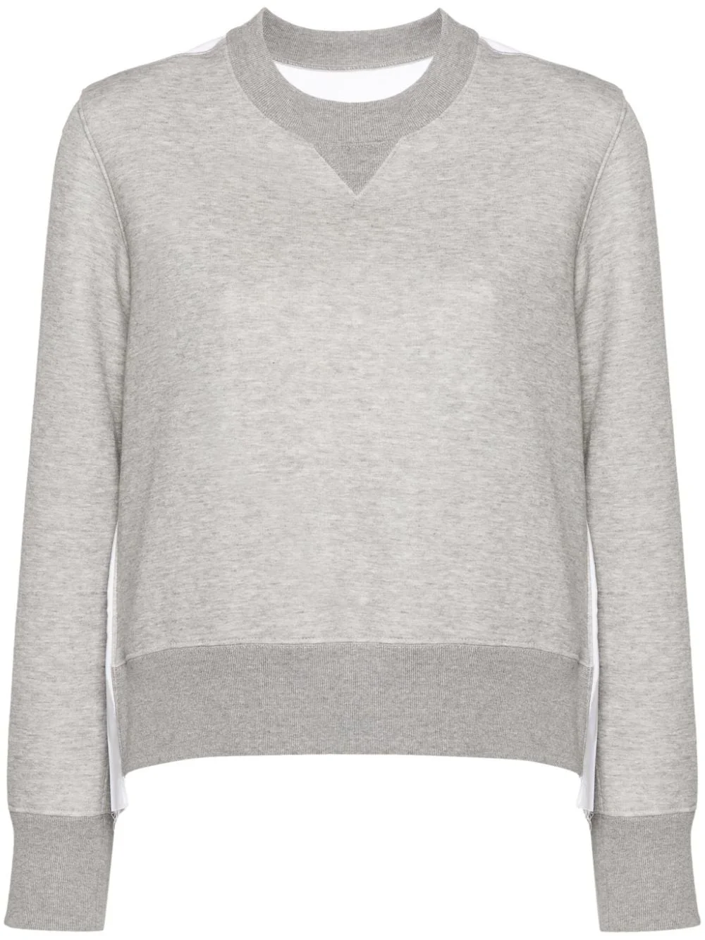 knife-pleats crew-neck sweatshirt Highlights - Heather grey/white - Cotton blend - Jersey texture - Knife-pleats panel to the rear - Crew neck - Long sleeves - Ribbed cuffs and hem - High-low hem Imported Composition Cotton 62%, Polyester 38% SIZE & FIT Model measurements Height 5 ft 11 in(1.8 m) Bust/Chest 32.67 in(83 cm) Hips 36.22 in(92 cm) Waist 25.19 in(64 cm) FittingInformation Designed for a relaxed fit, this piece allows for comfort and movement when worn Made from a midweight fabric This piece fits true to size – take your usual size