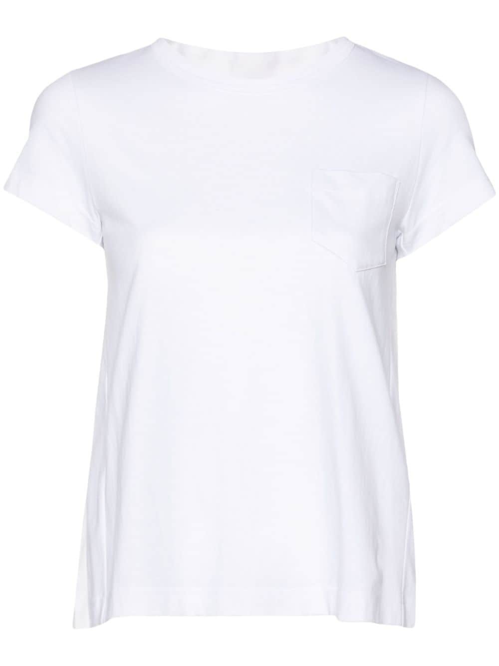 knife-pleats crew-neck T-shirt Highlights - White - Jersey texture - Knife-pleats panel to the rear - Crew neck - Short sleeves - Chest patch pocket - High-low hem Imported Composition Lining: Polyester 65%, Cotton 35% SIZE & FIT Model measurements Height 5 ft 11 in(1.8 m) Bust/Chest 32.67 in(83 cm) Hips 36.22 in(92 cm) Waist 25.19 in(64 cm) FittingInformation Designed for a relaxed fit, this piece allows for comfort and movement when worn Made from a midweight fabric This piece fits true to size – take your usual size