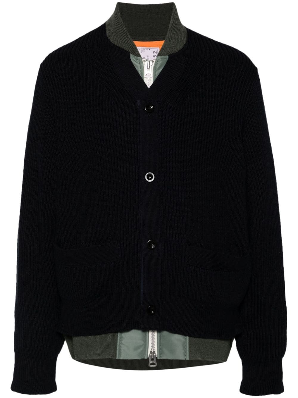 layered bomber jacket Highlights - Navy blue/green - Cotton blend - Ribbed knit - Baseball collar - Layered effect - Long sleeves - Two side patch pockets - Front button fastening - Front zip fastening Imported Composition Outer: Nylon 100%, Cotton 86%, Polyester 14% Lining: Polyester 100% SIZE & FIT Model measurements Height 6 ft 2 in(1.88 m) Bust/Chest 36.61 in(93 cm) Hips 35.82 in(91 cm) Waist 27.95 in(71 cm) Measurement CHEST 26.77 in(68 cm) LENGTH 28.54 in(72.5 cm) SLEEVE LENGTH 27.16 in(69 cm) Shoulder Width 20.47 in(52 cm) FittingInformation Designed for a relaxed fit, this piece allows for comfort and movement when worn Made from a midweight fabric This piece fits true to size – take your usual size Washing instructions Dry Clean Only