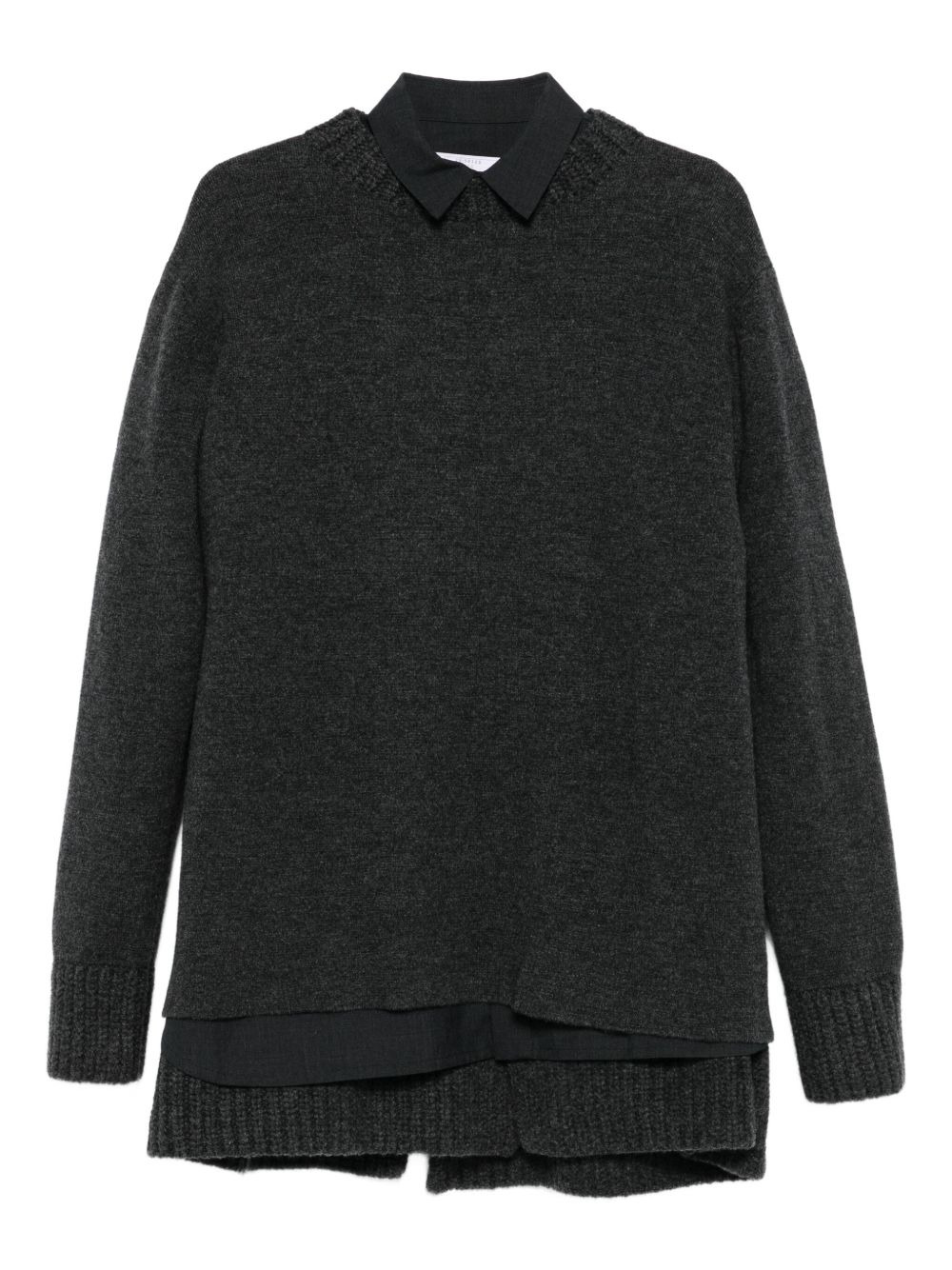 layered classic-collar mini dress Highlights - Grey - Layered design - Classic collar - Long sleeves - Ribbed cuffs - Rear slit Imported Composition Fabric 100% SIZE & FIT FittingInformation Designed to be unstructured, offering a loose fit throughout Made from a midweight non-stretch fabric Washing instructions Read Manufacturer Guidelines