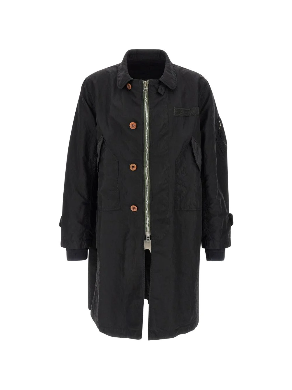 layered coat Highlights - Black - Layered design - Classic collar - Front zip closure - Button closure - Long sleeves - Flap pockets - Curved hem Imported Composition Nylon 100% Washing instructions Read Manufacturer Guidelines