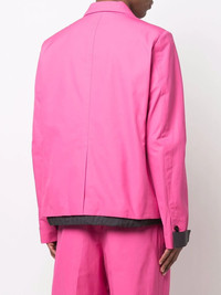 layered single-breasted blazer hot pink wool blend/cotton layered details front button fastening notched lapels chest welt pocket two front flap pockets long sleeves straight hem Imported Composition Outer: Cotton 100%, Wool 90%, Nylon 10% Lining: Cupro 100% SIZE & FIT Model measurements Height 6 ft 1 in(1.85 m) Bust/Chest 38.58 in(98 cm) Hips 37 in(94 cm) Waist 30.31 in(77 cm) Measurement WAIST 47.24 in(120 cm) BUST 47.24 in(120 cm) Washing instructions Dry Clean Only