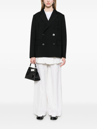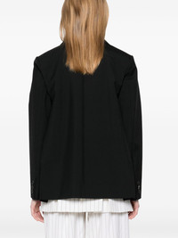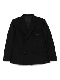 logo-applique blazer Highlights - Black - Double-breasted button fastening - Three front patch pockets - Buttoned-cuff sleeves - Pleat detailing Imported Composition Outer: Polyester 70%, Wool 30% Lining: Cupro 100% SIZE & FIT Model measurements Height 5 ft 9 in(1.75 m) Bust/Chest 31.88 in(81 cm) Hips 34.64 in(88 cm) Waist 24.01 in(61 cm) FittingInformation Designed to be unstructured, offering a loose fit throughout The internal shoulder pads offer a structured shape Made from a midweight non-stretch fabric