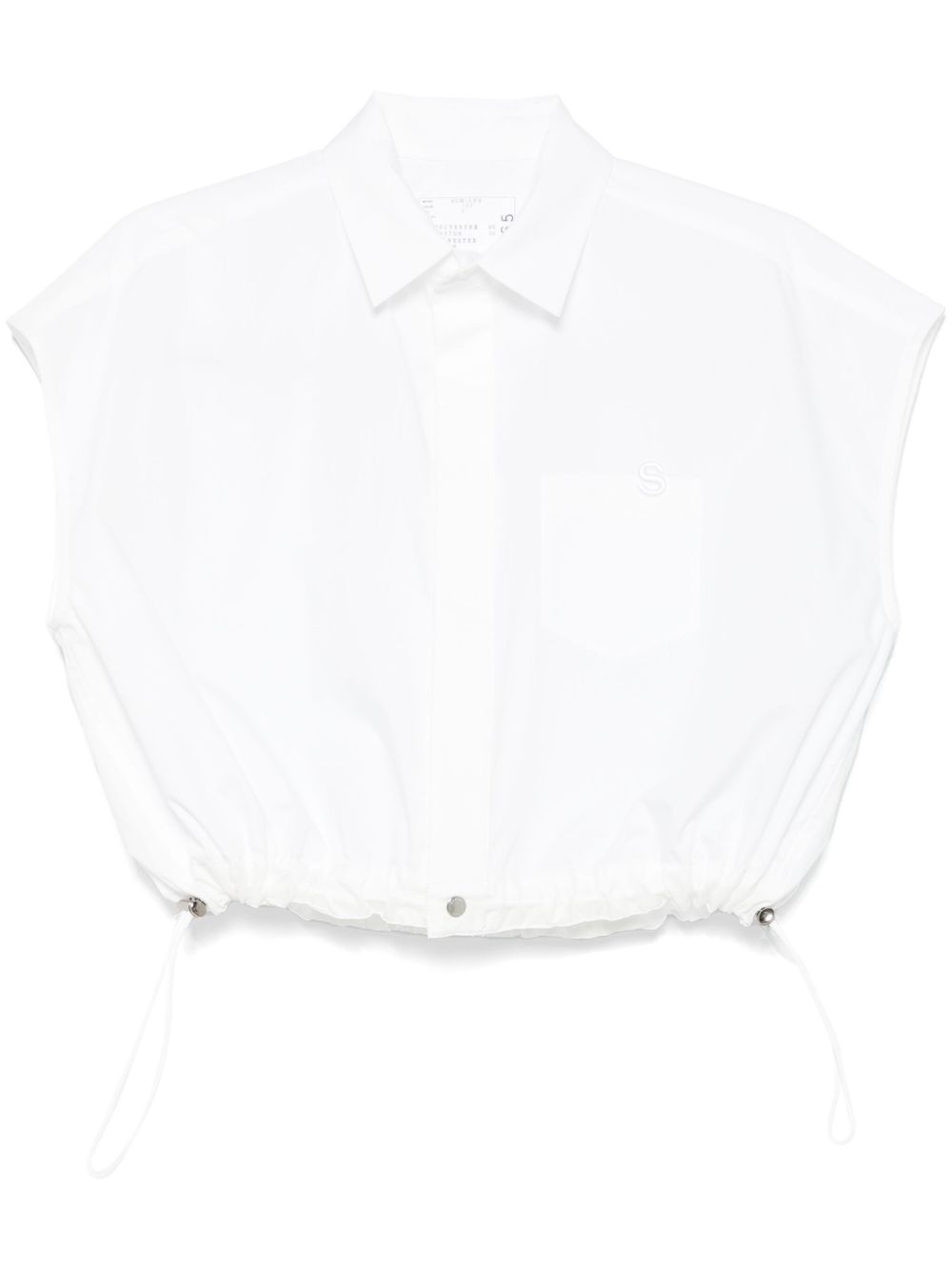 logo-embroidered shirt Highlights - White - Concealed front button fastening - Drawstring hem - Chest patch pocket - Sleeveless Imported Composition Rayon 100%, Polyester 65%, Cotton 35% SIZE & FIT Model measurements Height 5 ft 10 in(1.78 m) Bust/Chest 33.85 in(86 cm) Hips 36.61 in(93 cm) Waist 26.77 in(68 cm) FittingInformation Designed to be unstructured, offering a loose fit throughout The adjustable drawstring means that you can adjust this piece’s fit to suit your comfort and preference Made from a midweight non-stretch fabric Washing instructions Dry Clean Only