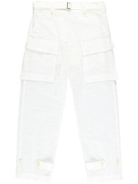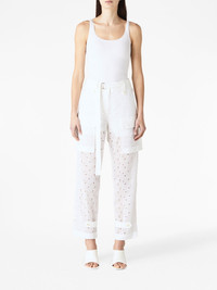 logo-embroidery trousers Highlights - Off-white - Cotton blend - All-over logo embroidery - Lace embroidery - Cropped leg - Front button and zip fastening - Belted waist - Belt loops - Two front flap pockets - Two rear patch pockets Made in Italy Composition Cotton 50%, Polyester 50%