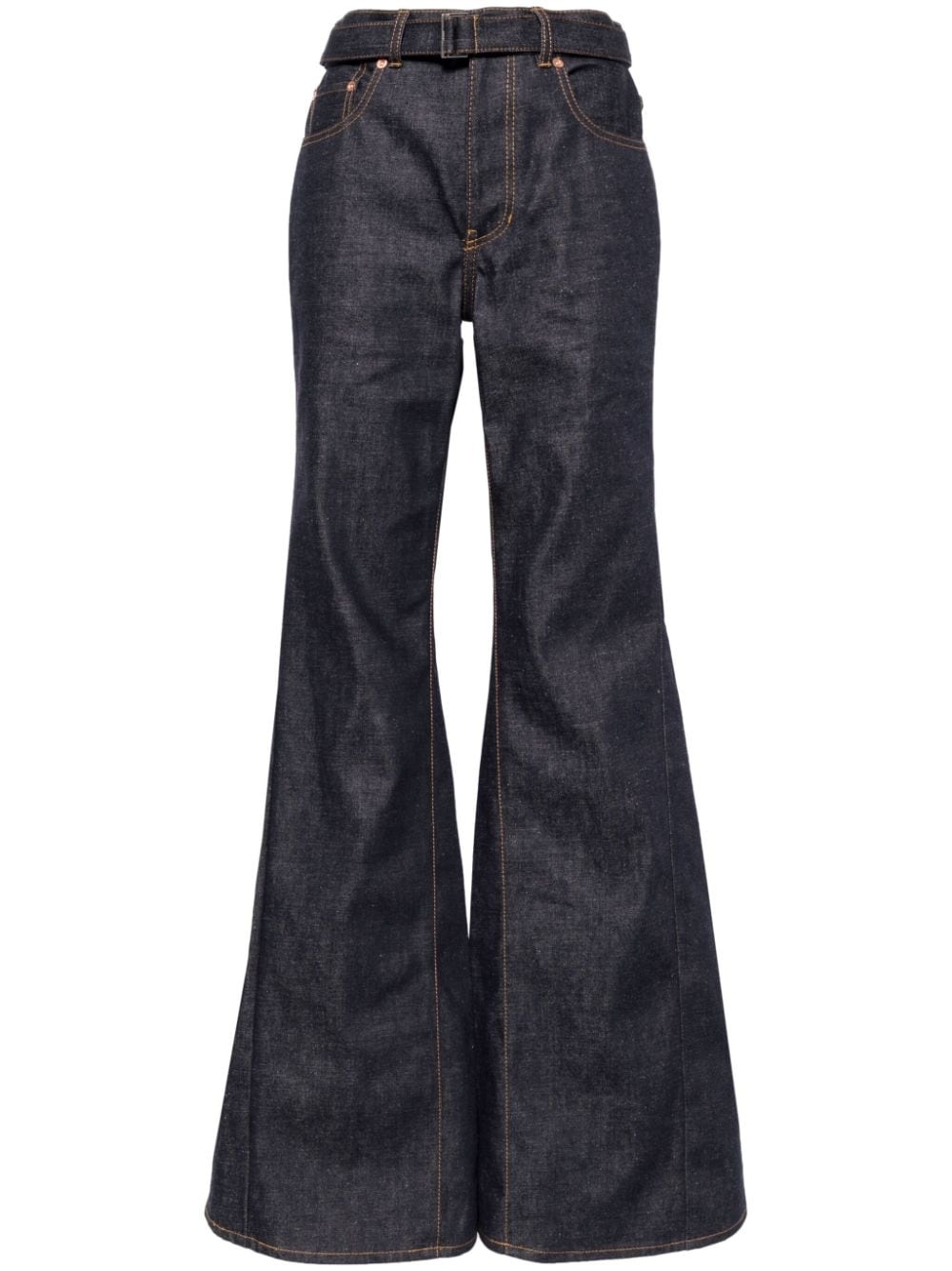 mid-rise flared jeans Highlights - Navy blue - Cotton - Denim - Contrast stitching - Mid-rise - Belt loops - Belted waist - Concealed fly and button fastening - Classic five pockets - Flared Imported Composition Cotton 100% SIZE & FIT Model measurements Height 5 ft 10 in(1.78 m) Bust/Chest 32.67 in(83 cm) Hips 37 in(94 cm) Waist 25.59 in(65 cm) FittingInformation Designed with a flared hem, these jeans allow for a close fit at the waist with a slim fit over the leg and widening towards the hem The belt offers adjustability for fitted preferences Sturdy and hard-wearing, this denim piece offers no stretch This piece fits true to size – take your usual size