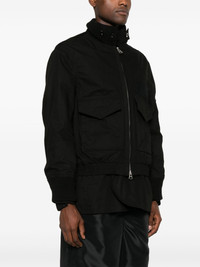 multi-pocket jacket Highlights - Black - Cotton blend - Ripstop texture - Layered details - Stand-up collar - Front button and zip fastening - Drop shoulder - Long sleeves with ribbed cuffs - Sleeve flap pocket - Two front cargo pockets - Two side slit pockets - American rear vent - Straight hem Imported Composition Outer: Cotton 53%, Acrylic 53%, Nylon 47%, Wool 36%, Polyester 10%, Polyurethane 1% Lining: Polyester 100% SIZE & FIT Model measurements Height 6 ft 2 in(1.88 m) Bust/Chest 36.61 in(93 cm) Hips 35.82 in(91 cm) Waist 27.95 in(71 cm) FittingInformation Designed for a relaxed fit, this piece allows for comfort and movement when worn The elasticated hem allows for movement and a comfortable fit Made from a midweight non-stretch fabric This piece fits true to size – take your usual size Measurement LENGTH 31.88 in(81 cm) Shoulder Width 21.45 in(54.5 cm) SLEEVE LENGTH 25.78 in(65.5 cm) CHEST 27.55 in(70 cm)