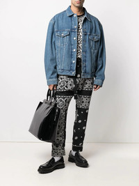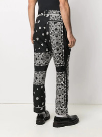 paisley-print belted trousers black/white cotton paisley print concealed front fastening belted waist two side slit pockets two rear welt pockets straight leg Imported Composition Outer: Cotton 100%, Polyester 100% Lining: Cupro 100% SIZE & FIT Model measurements Height 6 ft 1 in(1.85 m) Bust/Chest 37.79 in(96 cm) Hips 37.4 in(95 cm) Waist 30.7 in(78 cm) Washing instructions Machine Wash