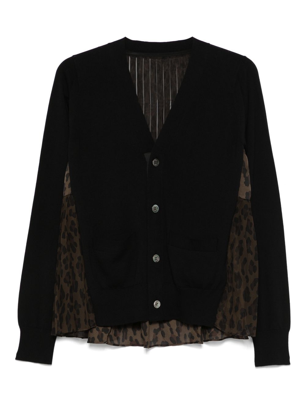 panelled cardigan Highlights - Animalier brown - Front button fastening - Ribbed cuffs - Two front patch pockets - Pleat detailing Imported Composition Cotton 100%, Polyester 100% Washing instructions Dry Clean Only